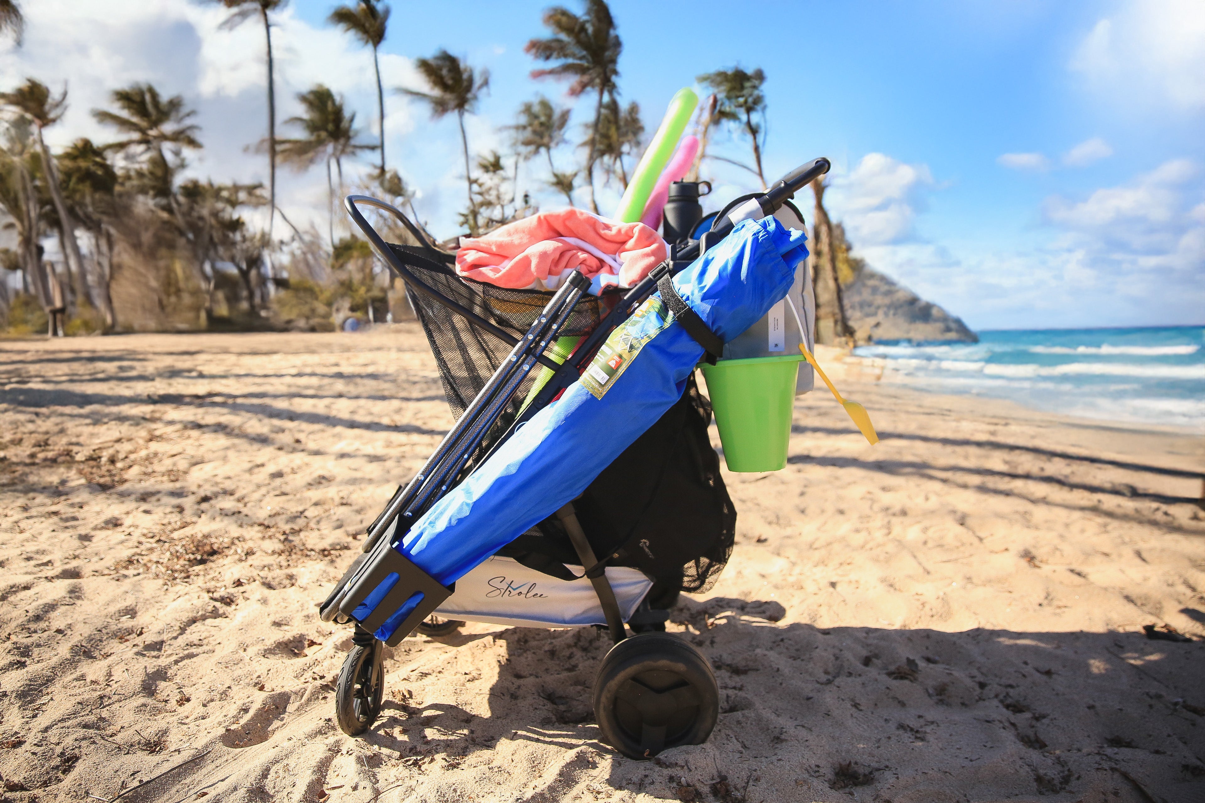 The ultimate companion that carries chairs, coolers, umbrellas, and all your essentials in one effortless trip.
